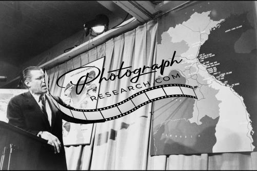 Secretary of Defense,Robert McNamara pointing to map,Vietnam,press conference