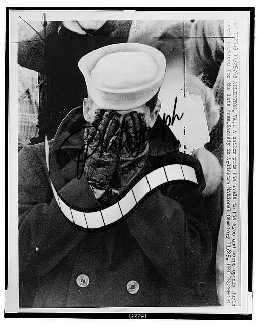 A sailor puts his hands to his eyes and weeps openly during funeral services for the late Pres. Kennedy in Arlington National Cemetery, 11/25