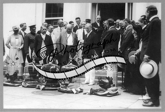 Woodrow Wilson with roosters at the White House,September 5,1919,cages