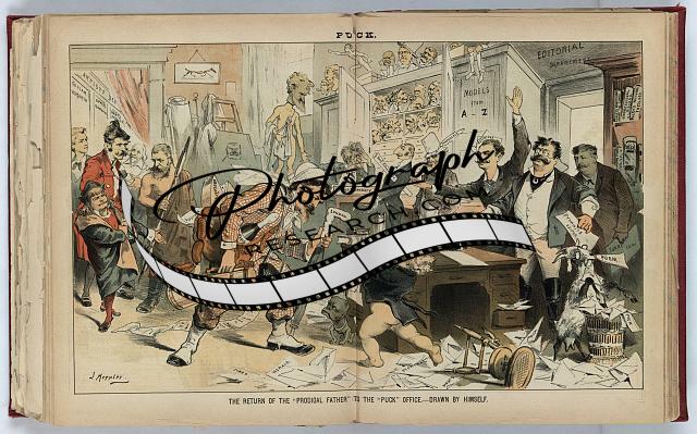 Return,prodigal father,Puck office,Europe,staff,Magazine,issues,J Keppler,1883