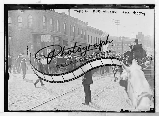 Taft speaking from dais,Burlington,Des Moines County,Iowa,IA,1908,horses
