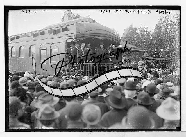 Taft on campaign train at Redfield,locomotive,crowd,September 29,1908