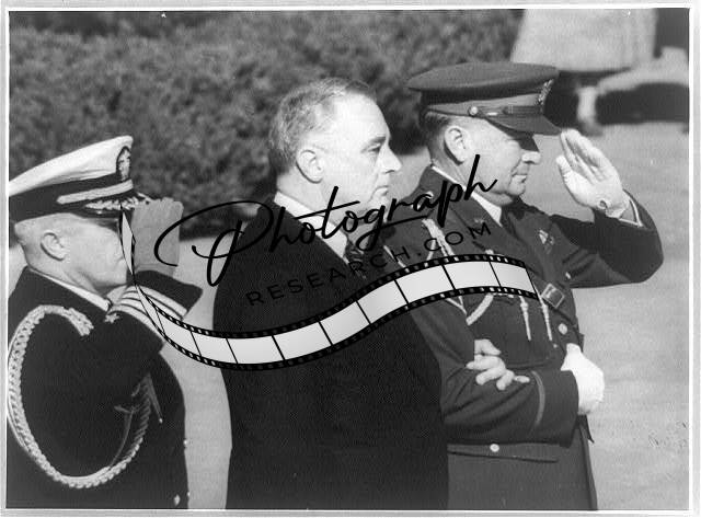 Franklin D Roosevelt,two military officers,saluting,military officers,1935