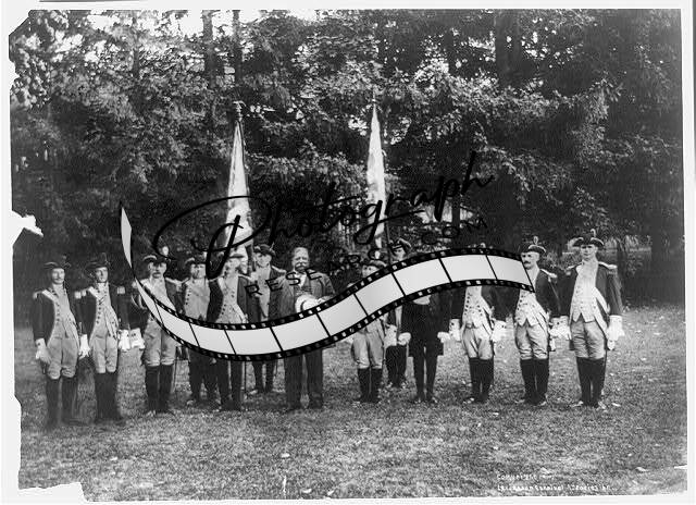 President William H Taft outdoors,twelve men,Revolutionary War uniforms,c1910