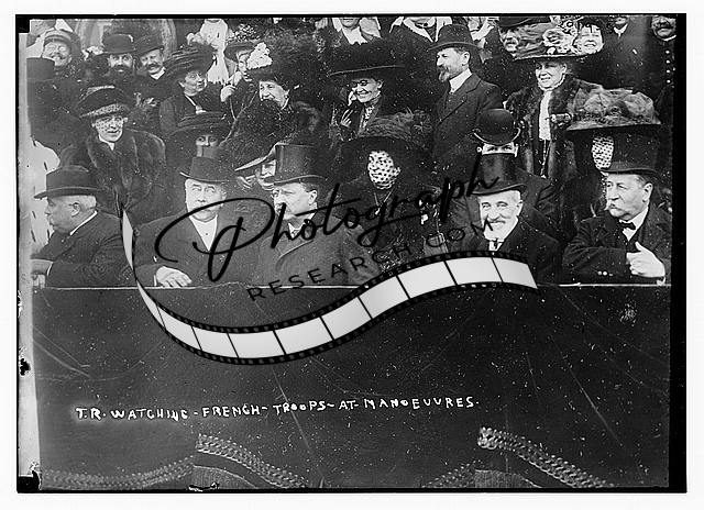 President Theodore Roosevelt watching French troops at Manoeuvres,others