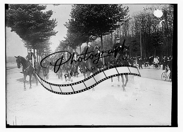 President Theodore Roosevelt in France,horseback,other men,bicycle,Bain News
