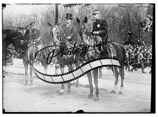 President Theodore Roosevelt in France,horseback,other men,Bain News Service
