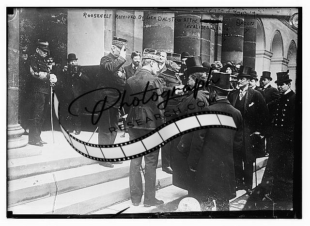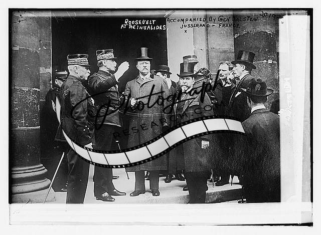 Theodore Roosevelt at the Invalides accompanied by Gen. Dalstein in France