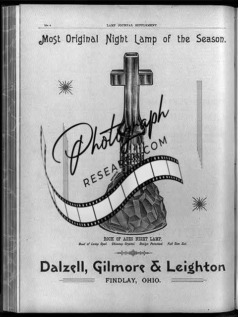Photo of Advertisement,Rock of Ages Night Lamp,Findlay,Ohio,1892,Dalzell,Gilmore
