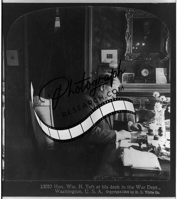 William Howard Taft,at his desk in War Department,Secretary of War,c1908,Flowers