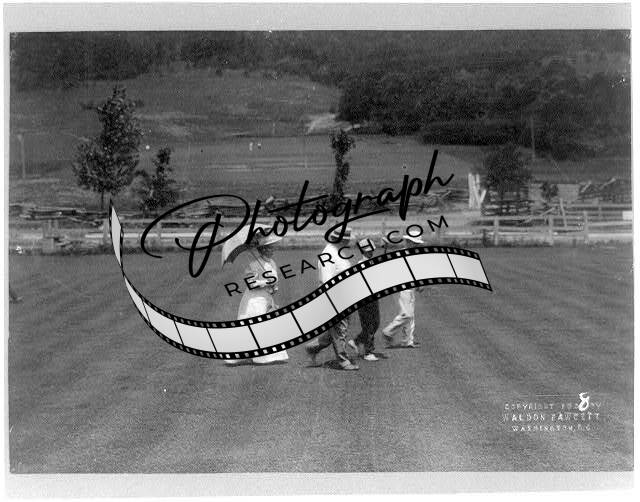 President William Howard Taft with group on golf course,c1908,woman,umbrella