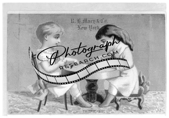 Tu triches. R.H. Macy & Co.,New York,NY,children playing dominos,table