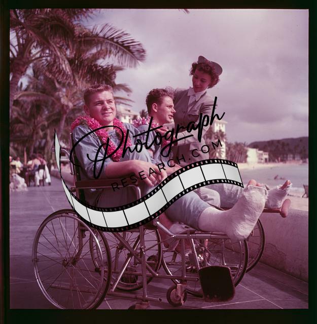 Korean war soldiers,Arthur Nelson,Jerry Smith,wheel chairs,stewardess,HI,1952