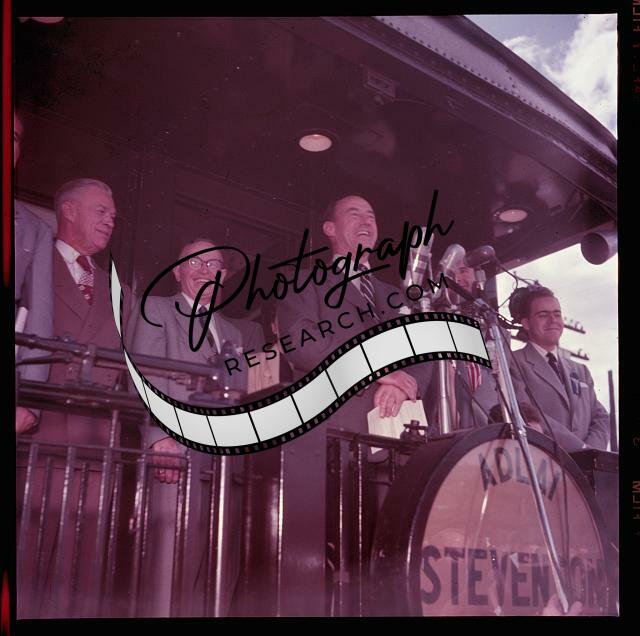 Presidential candidate Adlai Ewing Stevenson II,campaign speech,back,train,1952