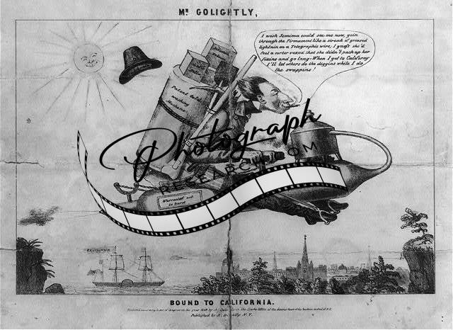 Mr. Golightly,bound to California,man riding rocket,items to sell to gold miners