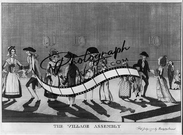 Village Assembly,Caricature,Stately Dance,Dancing,1776,Ballroom,Cartoon