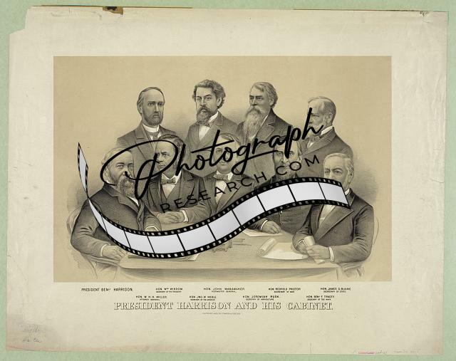 President Harrison,his cabinet,c1889,Currier & Ives,Photograph,men,table,papers