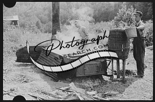 Pressing juice from sugarcane to make sorghum molasses,Racine,West Virginia,1