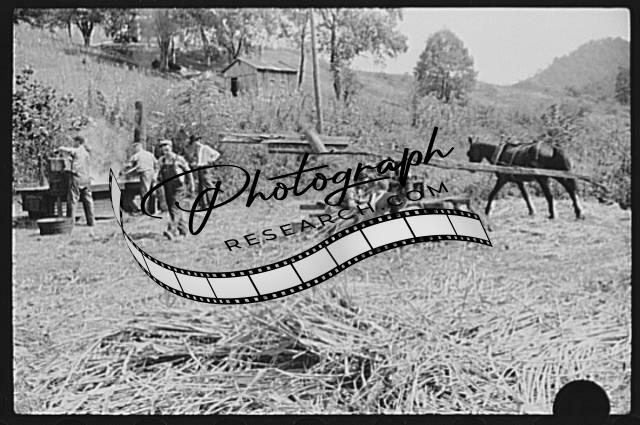 Pressing juice from sugarcane to make sorghum molasses,Racine,West Virginia,2