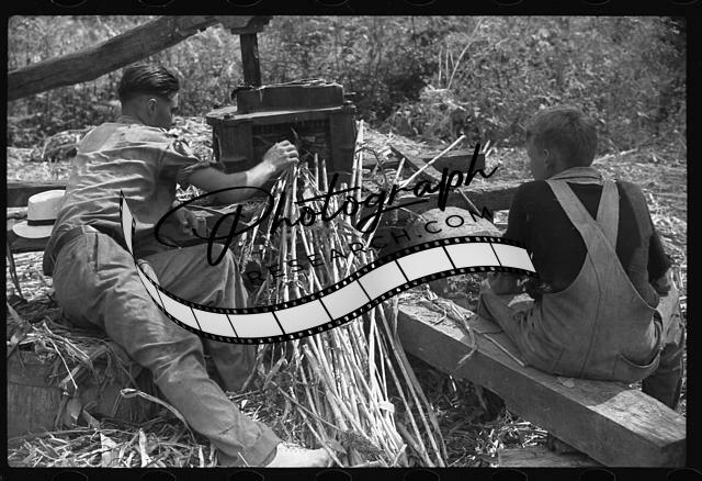 Pressing juice from sugarcane to make sorghum molasses,Racine,West Virginia,6