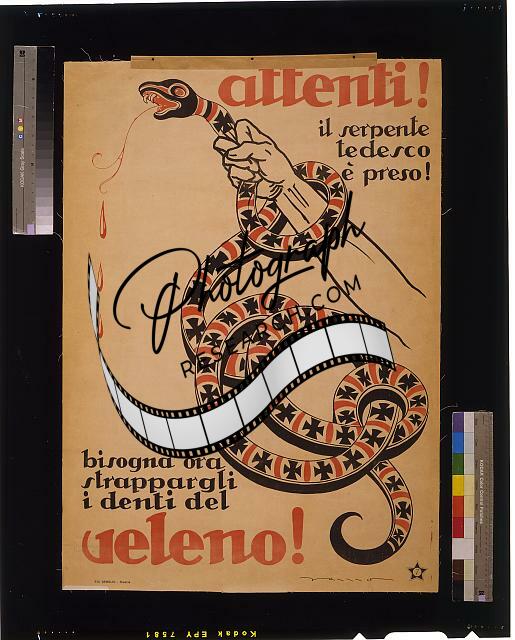 Attenti!,veleno!,World War I,WWI,1919,Italy,Germany,Snake,German Viper,Poison