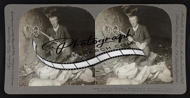 One of the universal brotherhood of shoe-makers -- making wooden shoes from bloc
