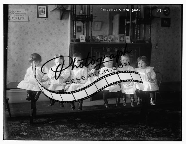 Children's Aide Society,seven young children sitting on bench,infant,toddlers