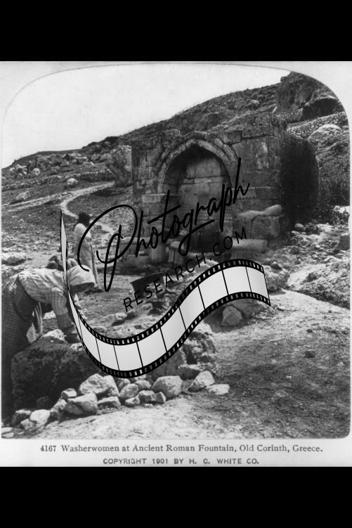 Washerwoman,Ancient Roman Fountain,Old Corinth,Greece,c1901,Laundry,Domestic