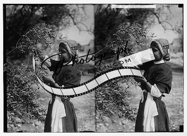 Maiden picking olives from branches,Middle East,American Colony Jerusalem Photo