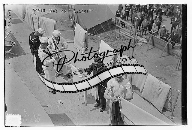 Wash day on RECRUIT,ship,vessel,sailors,buckets,Bain News Service