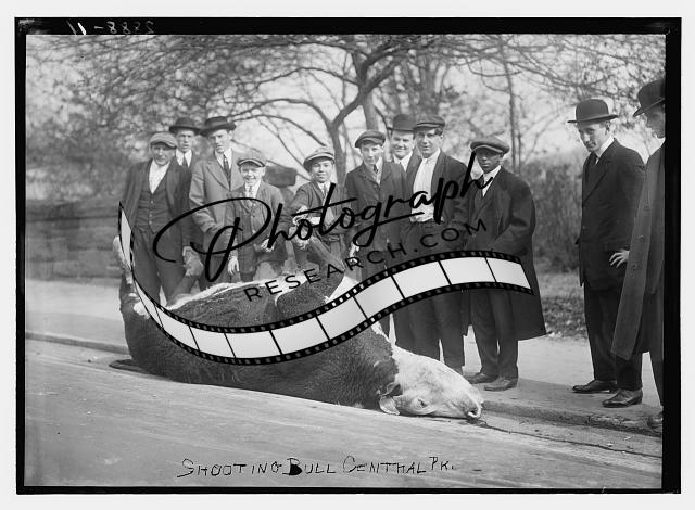 Shooting Bull -- Central Park,dead animal on street,people