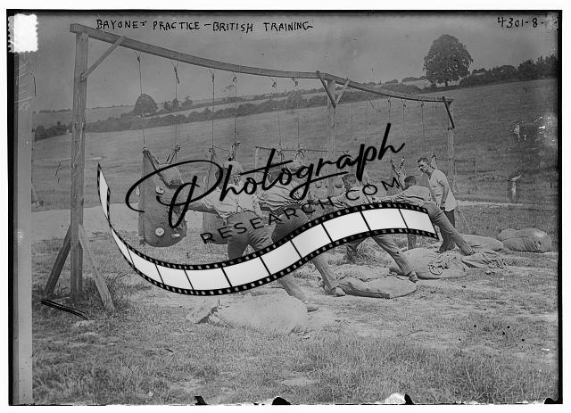 Bayonet practice,British Training,Military,sand bags,Bain News Service