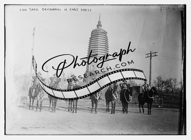 Liao Yang Gendarmes in fancy dress,men on horseback,elaborate dress,Bain News