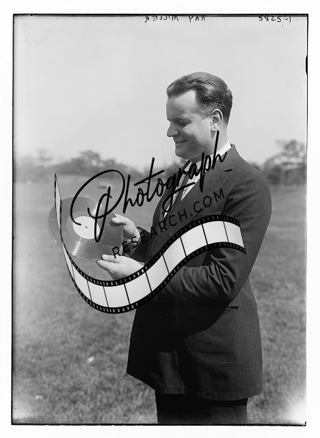 Ray Miller holding records,music devices,fields,outdoors,suit,Bain News Service