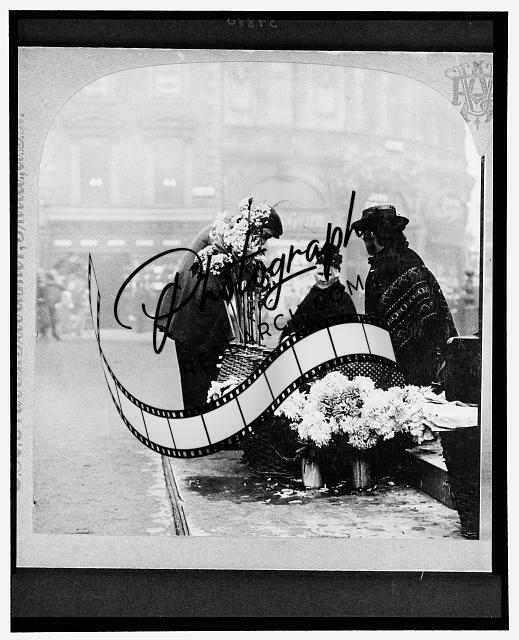 Foggy Morning,Piccadilly Circus,London,England,c1904,Flower Vendor,Street Corner