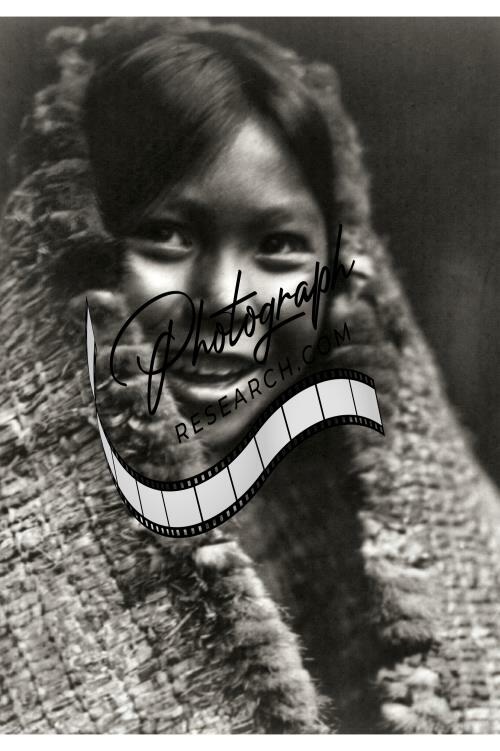 Clayoquot girl,smiling,wearing hood,c1915,Edward S Curtis photo,Indian