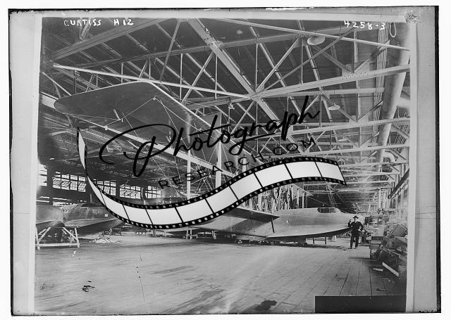Curtiss H 12 plane,airplane,hangar,Bain News Service,aviation