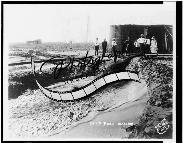 M. & P. Burk,block 818,Oil from pipe to hole in ground,c1919,Oil Well,Texas