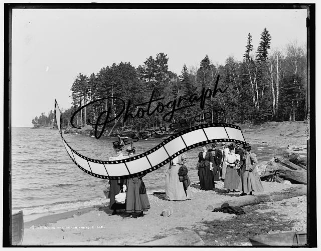 Along beach,Presque Isle,women,water bodies,shore,Marquette,Michigan,MI,c1898