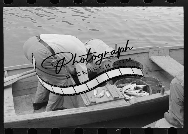 Unloading oysters from fisherman's boat,Olga,Louisiana,LA,FSA,September 1938,1
