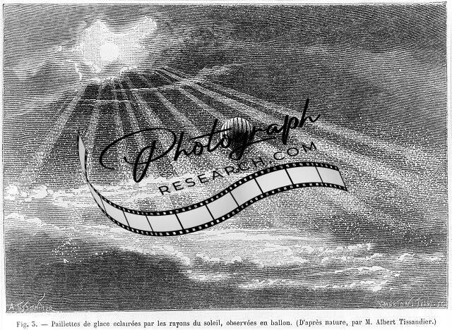 Paillettes de glace eclairées par les rayons du soleil observées en ballon,c1875