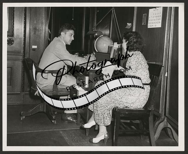 Title: Proof reading. Mr. Harold Snide, Historian; Miss Lydia Albertson, Editorial Clerk