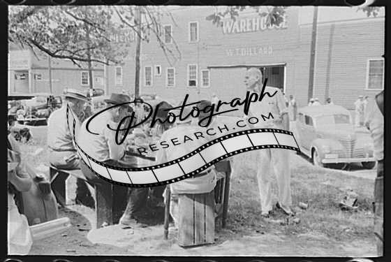 Title: Brunswick stew dinner in front of the tobacco warehouse on opening day of the auctions. Prepared by Parent Teachers Association of Prospect Hill, to raise money for a new gymnasium for the Prospect Hill Consolidated School in Caswell County, North Carolina