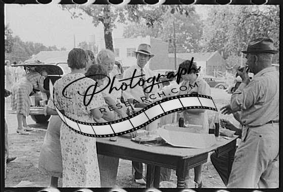 Title: Brunswick stew dinner in front of the tobacco warehouse on opening day of the auctions. Prepared by Parent Teachers Association of Prospect Hill, to raise money for a new gymnasium for the Prospect Hill Consolidated School in Caswell County, North Carolina