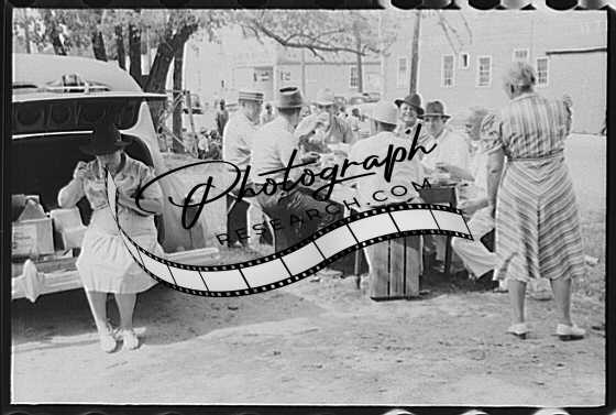 Title: Brunswick stew dinner in front of the tobacco warehouse on opening day of the auctions. Prepared by Parent Teachers Association of Prospect Hill, to raise money for a new gymnasium for the Prospect Hill Consolidated School in Caswell County, North Carolina