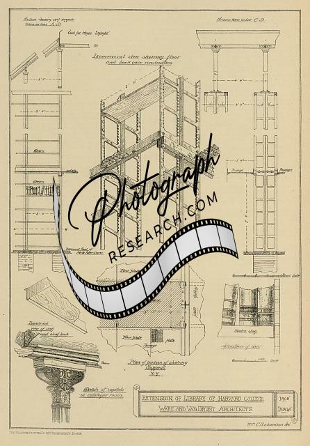 Harvard College,Iron details,extension of library,1878