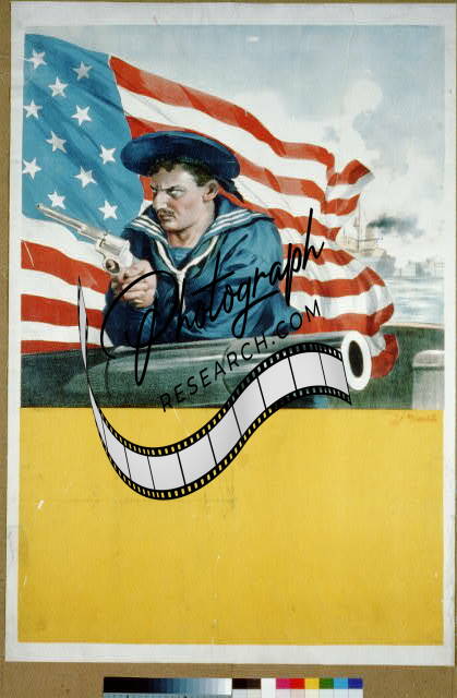Photo of Stock poster,sailor with U.S. flag,cannon,1898,gun