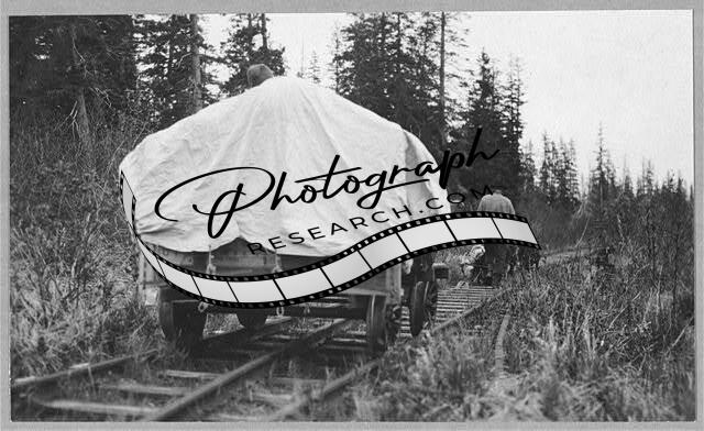 Dog team pulling railroad cart,Alaska,AK,Railroad Tracks,RR,United States,c1915