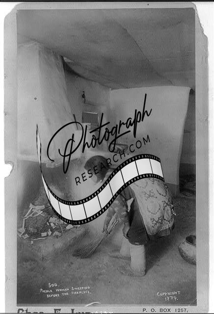 Pueblo Woman Sweeping Before the Fireplace,c1889