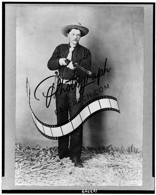 Bill Bennett,holding rifle,Western detectives,United States,knives,hat,c1906